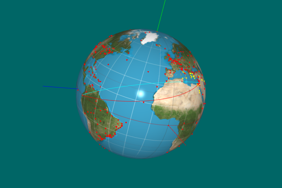 Canvas is used for drawing the globe and its tooltip is used for displaying the GCS coordinates (longitude and latitude) on the globe when pointer is moved upon.